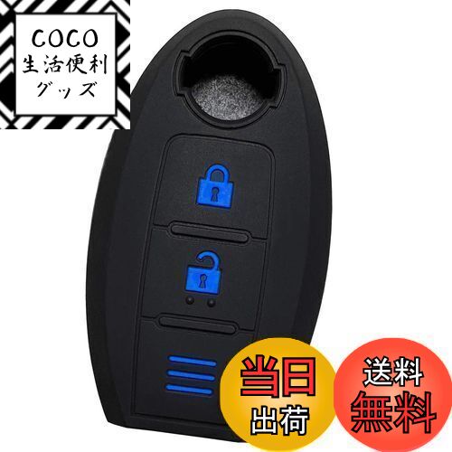 【送料無料】【IKT】日産車用 インテリジェントキー用 シリコンカバー 2ボタン ブラックブルー / ノート / ノートeパワー / デイズ / キューブ / マーチ / ジューク / NV350キャラバン / ウイングロード / エクストレイル / ステージア / ティアナ / ティーダ / ティーダラテ