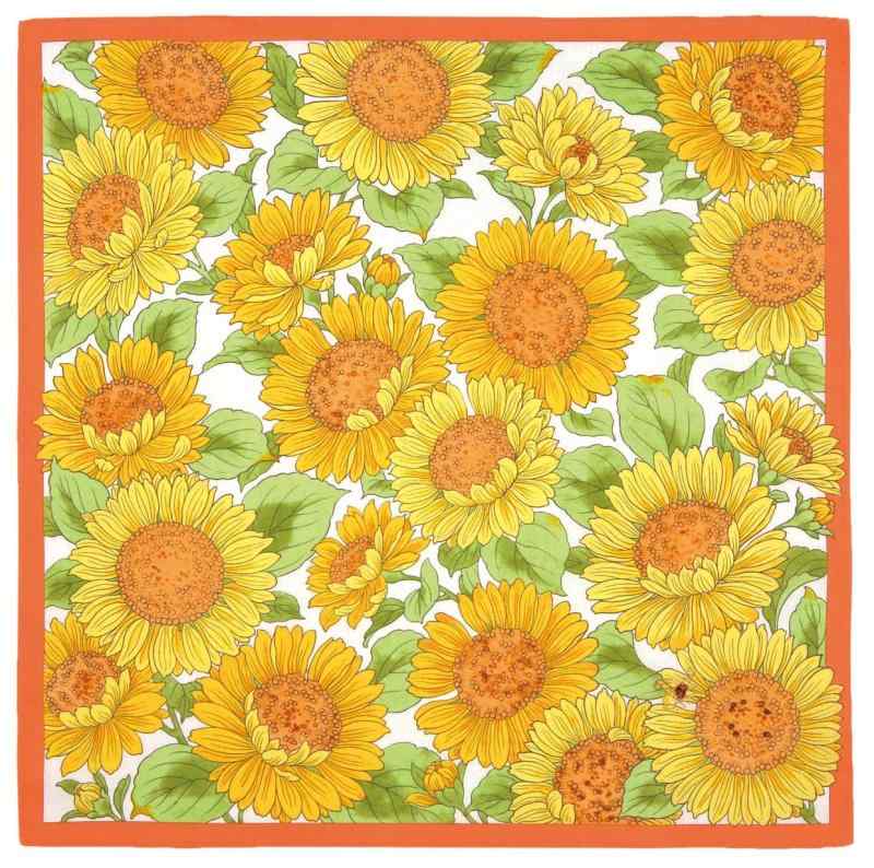 山本仁商店(YamamotoJin) en.gawa. 刺繡ハンカチ 向日葵 Aオレンジ 【1781-A】 花柄 日本製溢れんばかりに咲き誇る美しい花、花・・・刺しゅうの入った華やかなハンカチです。大切な方へのプレゼントにもオススメです。山本仁商店は京都の伝統の文様や多様なデザインを扱う染色意匠。京都の意匠として高品質で繊細な和雑貨をお届けします。 山本仁商店は世代世代に商うものこそ変われども、その時代に合った『仁』の心を大切にこれからも商いを続けてまいります。素材:綿100%サイズ:約48×48cm生産国:日本
