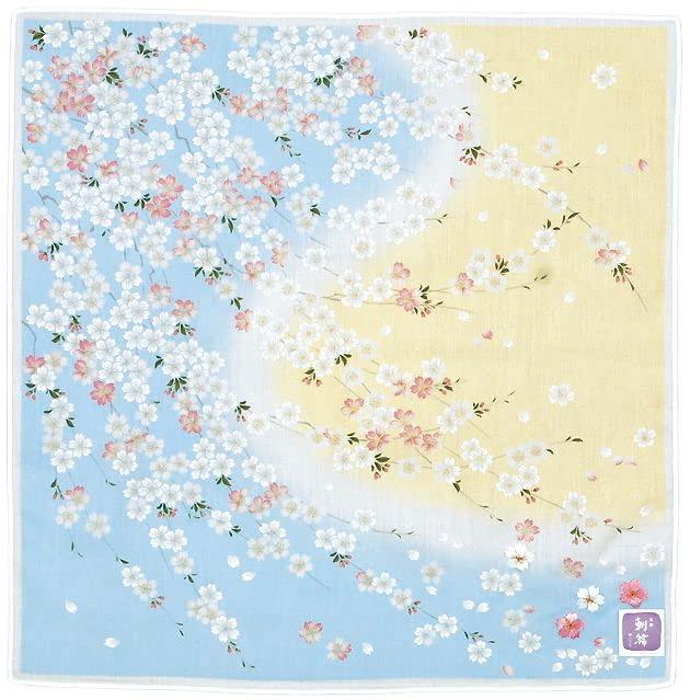 山本仁商店(YamamotoJin) 友禅刺繡ハンカチ 桜舞い Bブルー 【1155-B】 和柄 優美 日本製