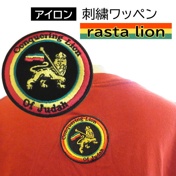 ワッペン 刺繍 アイロン クール ライオン ラスタ レッド 赤 イエロー 黄色 グリーン 緑 ブラック 黒 アジアン雑貨 アイロン専用 刺繡ワッペン プレゼント ラスタカラー アフリカ ジャマイカ レゲエ 布地用 アクセント [メール便対応可] アイロンワッペン ラスタライオン