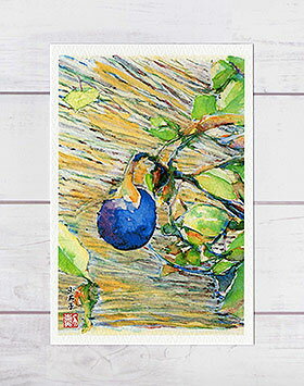 小茄子 [ ナス ] ( 野菜 茄子 ナスビ 茄 水彩画 風景画 ) ★当店オリジナル★