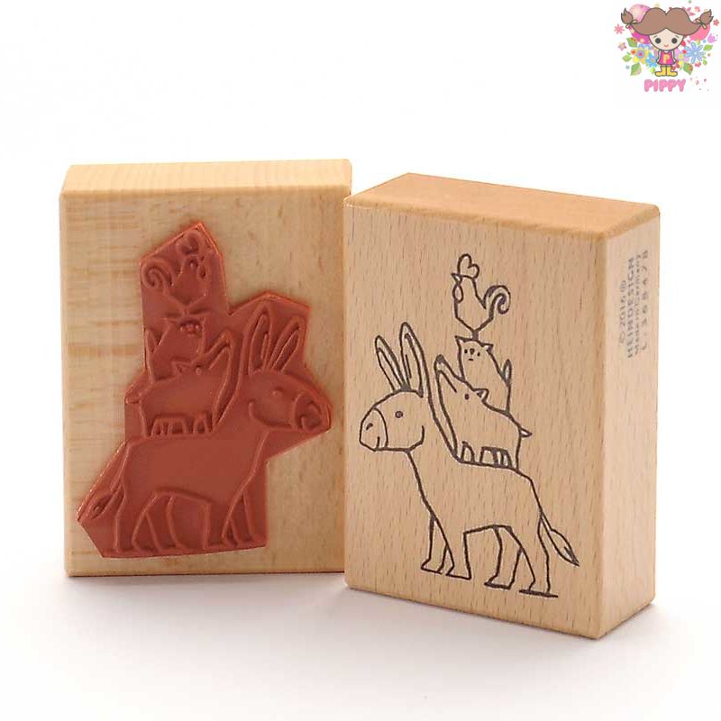 HEINDESIGN ラバースタンプ☆Bremer Stadtmusikanten☆ ブレーメンの音楽隊 ロバ 犬 猫 鶏 動物 絵本 大きい イラスト風 アウトライン手帳 日記 ジャーナル ラッピング カード はんこ スタンプ お洒落 可愛い