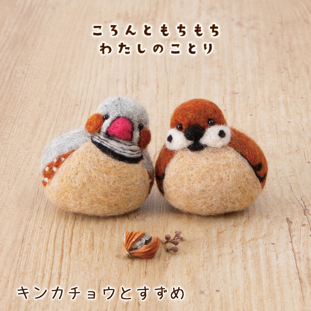 羊毛フェルト キット ころんともちもちわたちのことり キンカチョウとすずめ とり 小鳥 マスコット ぬいぐるみ フェルト人形 ハンドメイド かわいい 子ども 手作りキット 手芸用品 手芸キット 簡単 動物 ハマナカ