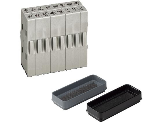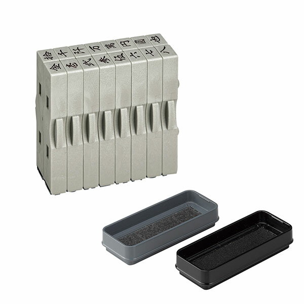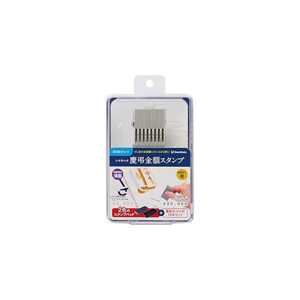 サイズ:幅73mm×奥行30.6mm×高さ◆商品名:シャチハタ ゴム印 慶弔金額スタンプ 漢数字セット 2号 スタンプパッド付 GS-KRA-2K【セット内容】漢数字ゴム印16本、スタンプパッド2色(黒、薄墨)【ゴム印の印面サイズ】4.8mm×6.2mm(16本入り) 【書体】行書体【スタンプパッドの本体サイズ】幅73mm×奥行30.6mm×高さ13.3mm(墨・薄墨2色) 【インキ補充】スタンプパッドはインキ補充で繰り返し使用可能。※補充インキは別売です。(補充インキ品番:XLR-20N)【仕様1】ゴム印の凹凸部をはめ合わせることにより、縦にも横にも連結することができます。 【仕様2】ゴム印本体の上下を逆さまに連結することで、文字と文字の間に空白をつくることができます。【仕様3】補充なしで、約300回のなつ印ができます。※当社試験データによる 【仕様4】にじみの少ない油性顔料系インキを使用しています。 【仕様5】印影の乾燥後は、耐水性・耐光性に優れています。説明のし袋への金額表記を簡単にできるゴム印と、黒・薄墨2色のスタンプパッドのセット慶弔金額スタンプ。ゴム印は連結式なので、様々な金額表記ができます。