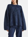 ニット・セーター レディース ゆったり ラウンドネック 長袖 プルオーバー 海 ブルー ドロップショルダー 伸縮性 暖かい 秋冬