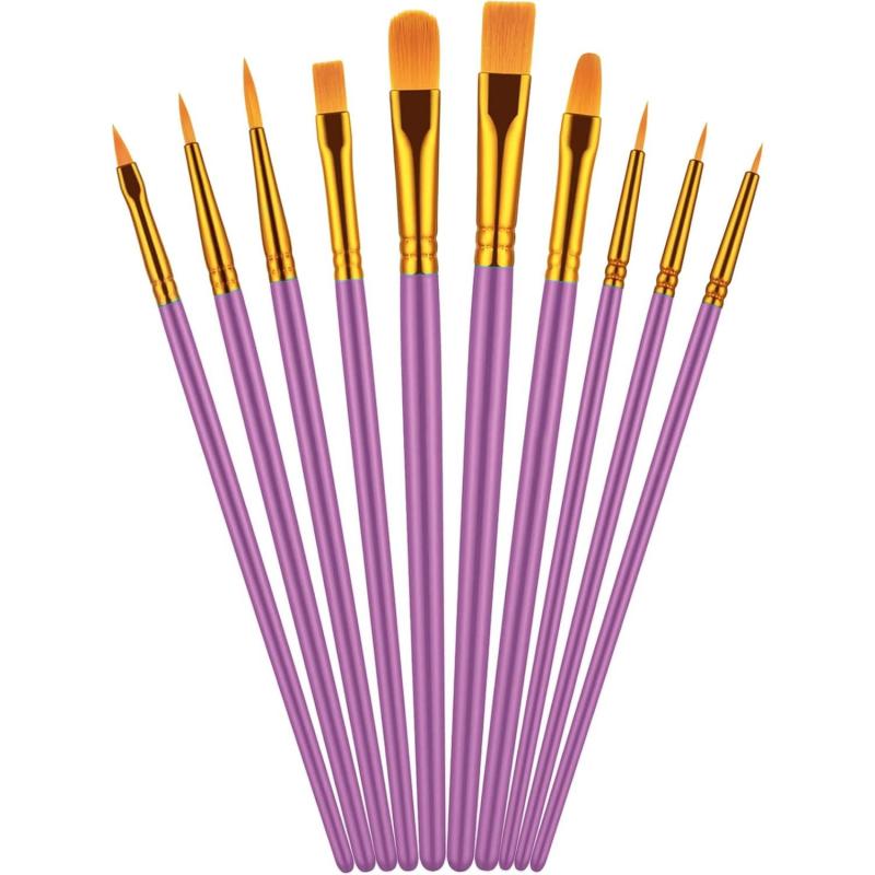 筆 絵の具 筆 画材 10本セット 油筆 水彩筆 アクリル筆 平筆 丸筆 ナイロン毛 短毛筆 大人用・子供用サイズ