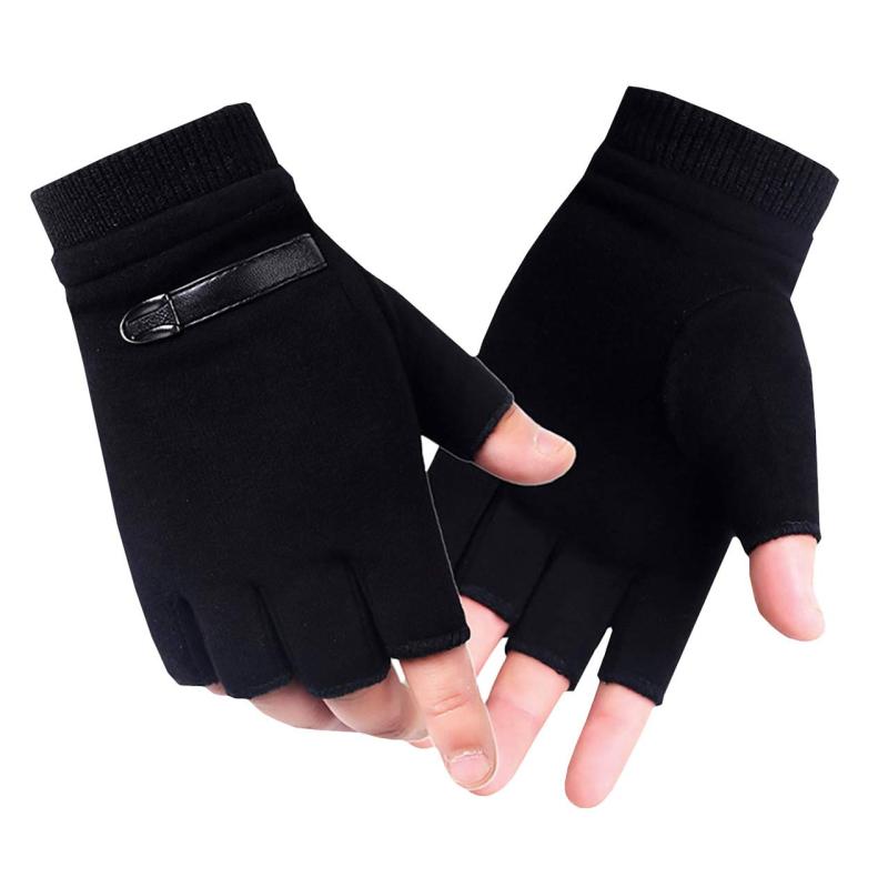 LEX STANDARD(レックス スタンダード) 手袋 指なし グローブ レザーベルト付 メンズ 防寒 秋冬 裏起毛 スマホ ゲーム GT001 (1 ブラック)
