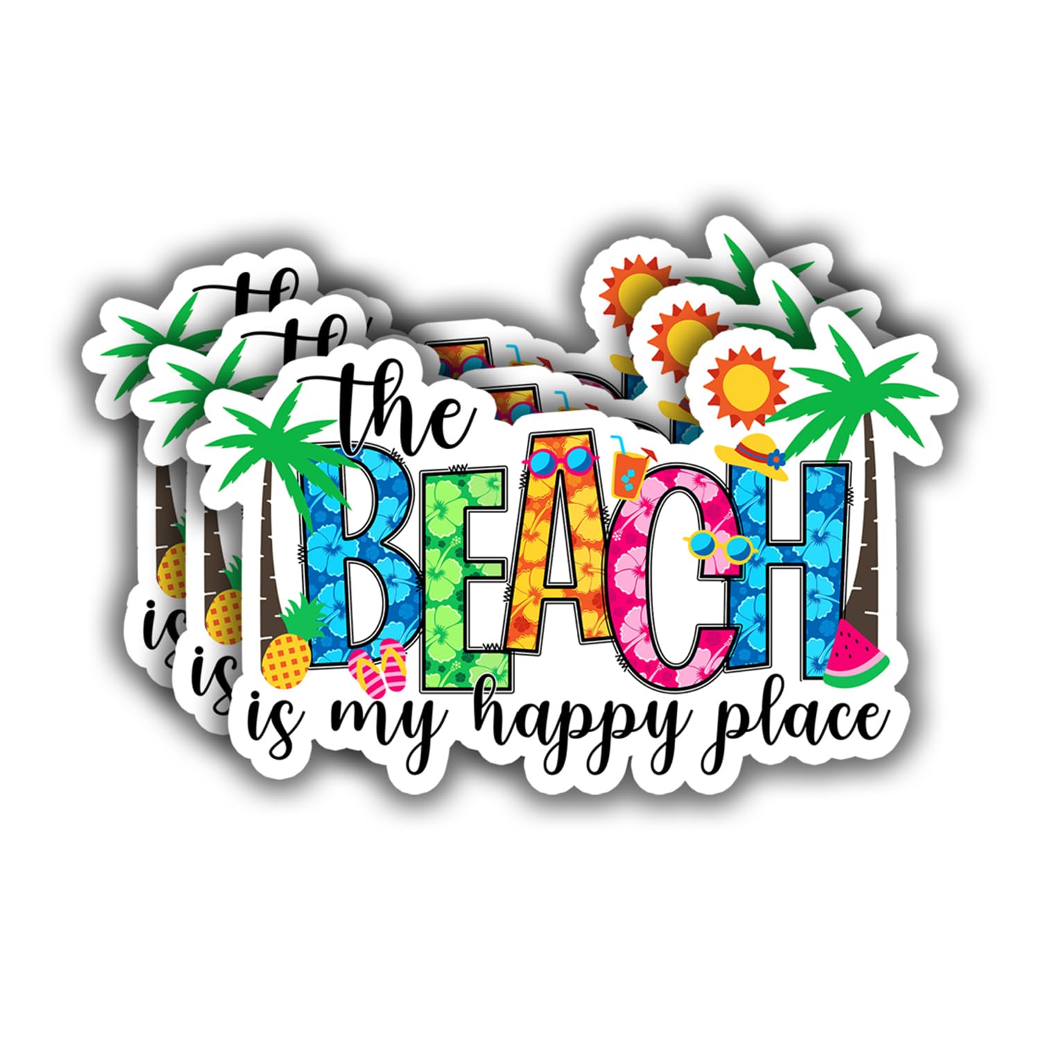 (3個)The Beach is My Happy PlaceステッカーファニーオーシャンライフタンブラーデカールステッカーKindleラップトップウォーターボトルフォンハードハットビニールデカール-3x2インチ