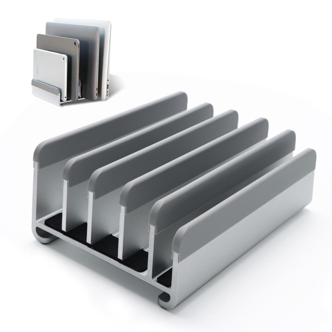 YIK TUNG ノートパソコンスタンド 縦型 5台収納 pcスタンド 縦置き 収納 5スロット 幅調整可能 アルミ合金製 シリ コーンゴム傷防止 パソコンスタンド 全機種対応MacBook Pro Surface iPad HP Lenovo ThinkPad H u a w e i Surface Dell、HP、Lenovoなど