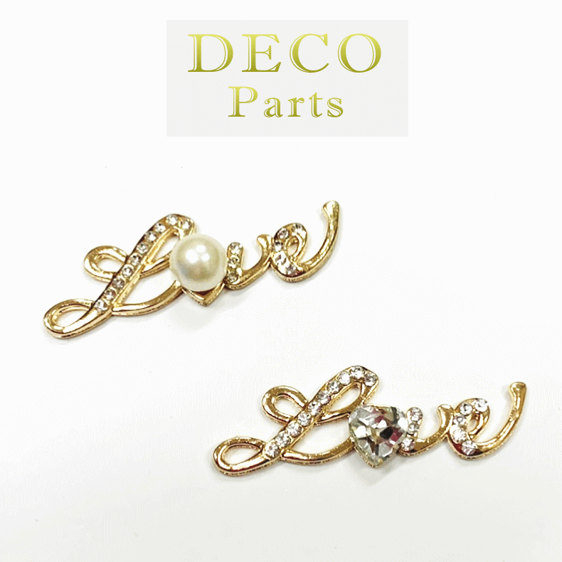 デコパーツ love パールorハート 手芸パーツ 樹脂パール キラキラ ラインストーン メタルパーツ デコ電 ハンドメイド 素材 資材 材料 リメイク ゴージャス 飾り 可愛い 豪華 華やか アレンジ クラフト 手作り カスタム 値下げ プチプラ メール便