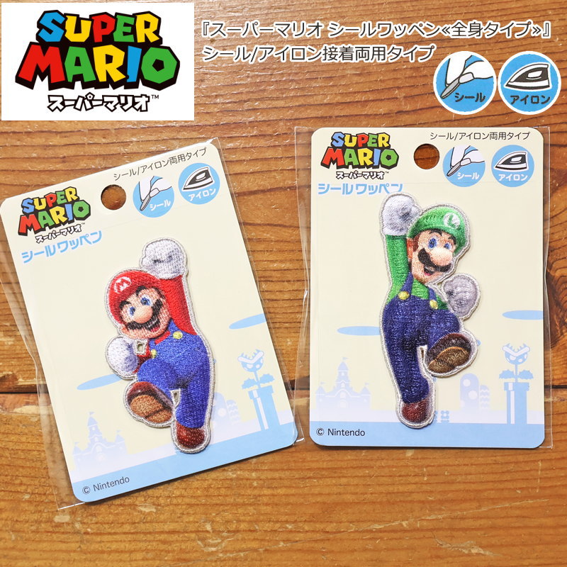 『スーパーマリオ シールワッペン≪全身タイプ≫』(1枚入)シール/アイロン接着両用タイプ商用利用不可/キャラクター/ゲーム/マリオ/ルイージ/アップリケ/キッズ/