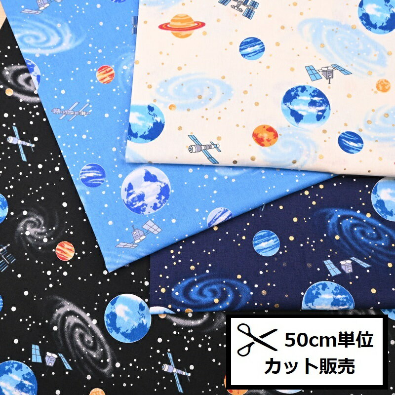 【P5倍★BLACK FRIDAY期間限定】CBプリント 生地 (50cm単位) A2023-6 惑星 宇宙 人工衛星 キラキラ ゴールド シルバー 土星 地球 水星 火星 木星 金星 サターン ヴィーナス アース マーキュリー マーズ ジュピター 入園 入学 ハンドメイド