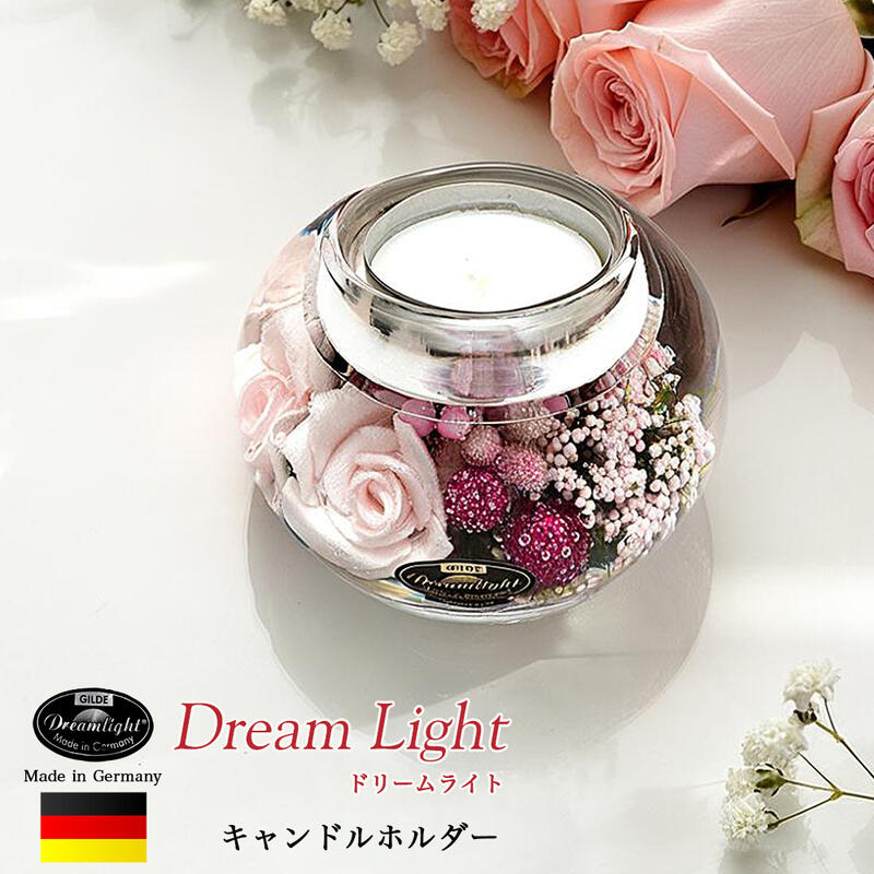 材質ガラス製詳細サイズ/直径約90×高さ80mmドイツ製全ての工程がハンドメイドで行われている為、ひとつひとつ違った風合いを持っています。使用上のご注意○水平な場所で燃焼してください。○温度の高い場所に置かないで下さい。温度が60℃以上の場所では、ジェルが変形する場合があります。○直射日光に長時間当てないでください。特に窓際は温度が高くなりますのでご注意ください。○キャンドルが落ちたり倒れたりしないよう設置してください。○通風を避け、カーテン等の可燃性の物から離してご使用ください。○熱源となる物の上に直接置かないでください。○燃焼中や消火直後は、容器が熱くなっている場合がございます。容器に触れるときは火傷にご注意ください。○燃えているキャンドルを放置しないでください。○燃焼中は液化しますので触れたり移動させないでください。○使用後は火が完全に消えていることを確認してください。○キャンドルや炎の上に物を落とさないようにしてください。○お子様やペットの手の届かない所に置いてください。○商品の底に貼ってあるビニールは、剥がさずお使いください。 配送料こちらは送料別商品です。送料が別途加算となります。北海道・沖縄・離島は別途料金がかかります。ご注文の受付確認後、追って別途送料をメールにてお知らせ致しますので、ご確認ください。配送について※メーカーより直送します。その他の商品との同梱はできません。※ご注文のタイミングにより、欠品、または売り切れの場合がございます。ご了承ください。※商品がお手元に届きましたら、すぐに、注文と違ったものが送られていないかどうか、商品に破損・不良などがないかどうか、ご確認ください。その他※ラッピング、熨斗(のし)不可※掲載している商品の色味は、できる限り実物に近い色味を表現するよう努めておりますが、お使いのパソコン画面や携帯電話など、ご覧になられる環境により、色味が異なる場合がございます。あらかじめ御了承ください。ドイツ製キャンドルホルダー ドリームライトキャンドルホルダーとしてやわらかな灯りや香りを楽しんだり、 お部屋のインテリアアクセントとして飾ったり、あなたの暮らしを輝かせるアイテムとして活躍します。ドリームライト キャンドルホルダーはドイツで1999年に誕生し、現在世界60カ国以上の国で親しまれています。マウスブロウで薄いガラスを形成し、その中に彩り豊かな花々や植物、フルーツなどのモチーフやビーズをジェルで流し込み閉じ込めています。まるで本物の様なオーナメントは、ドイツならではの高い品質を誇る製品です。全ての工程をハンドメイドで行っているため、ひとつひとつ違っています。 ※ハンドメイド品のため、お花の形や色味、配置など、写真と実物は微妙に異なる場合がございます。ご了承ください。