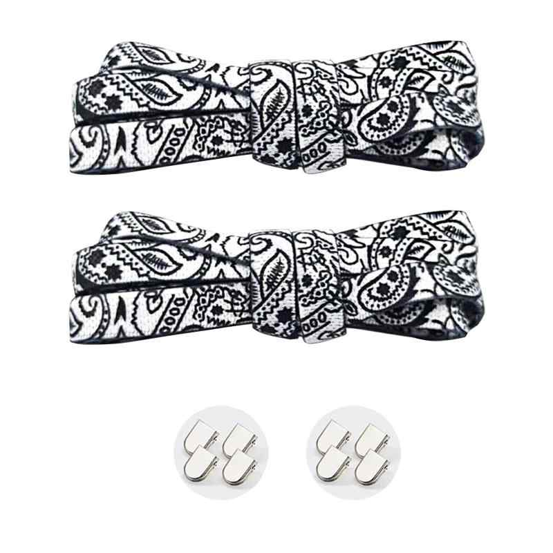[Amerlery] 結ばない シューレース 靴紐 伸びる 弾性 平紐 靴ひも 130cm 8mm幅 子供 大人 高齢者に 着脱を簡単に 無地 くつ ローカット ハイカット 2足分(4本)簡単装着: 弾力のあるゴム製の靴ひもで、靴に通すだけで簡単に装着できます。幅広い適応性: 8mmの幅と130cmの長さで、スニーカーやブーツなど様々な靴に対応可能です。伸縮自在: 靴ひもには7本のゴムが入っており、伸縮性に優れた履き心地を実現します。おしゃれなデザイン: 黒、白、赤の3色展開で、スタイリッシュな印花柄が施されています。男女兼用: シンプルなデザインで、男女を問わずお使いいただけます。