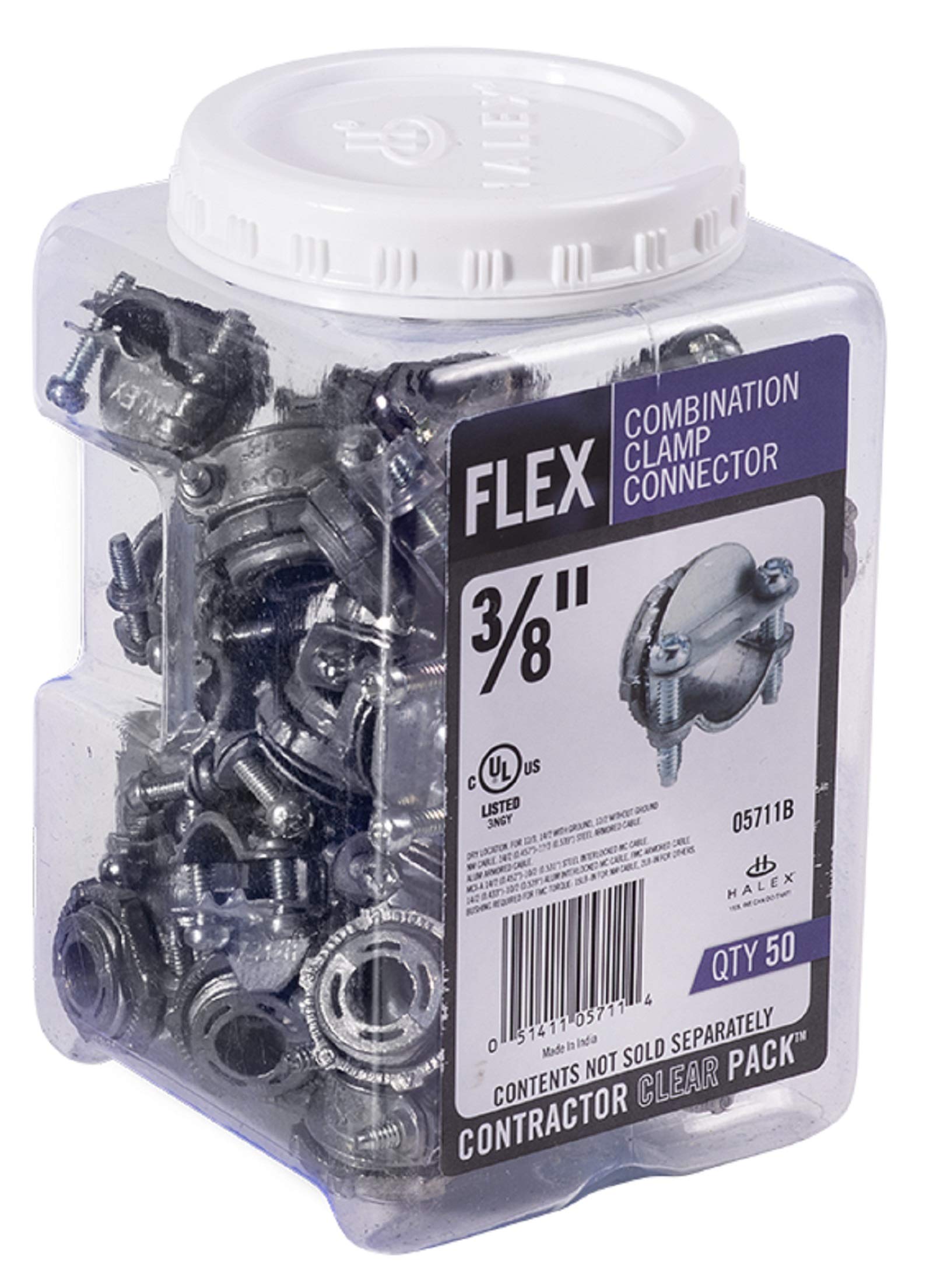 Halex 05711B MISCELLANEOUS FLEX/BX FITTINGS 3/8インチ (1/2インチ KO) シルバー