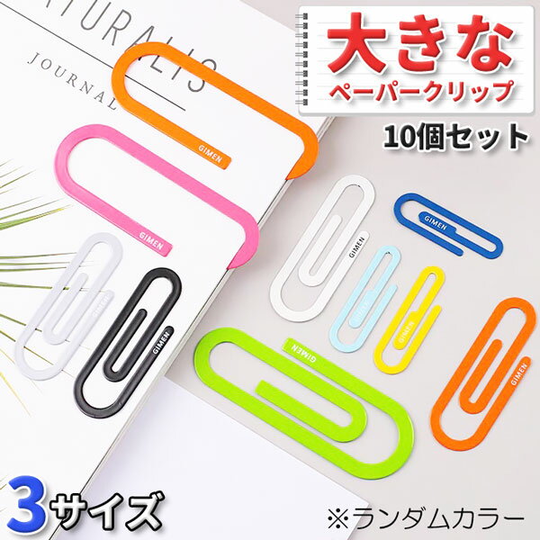 送料無料 3サイズ 10個セット 大きな ペーパー クリップ 文房具 栞 しおり ブックマーカー 大きい ユニーク かわいい ランダムカラー