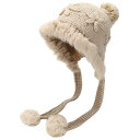 [maly] レディース帽子 ニット帽 ファー 冬 裏起毛 耳当て 防寒 暖かい 可愛い 小顔効果 折りたたみ 軽い 快適 秋冬 寒さ対策 ポンポン ニットキャップ