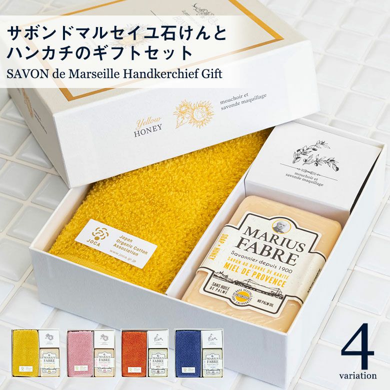 ギフト サボン ド マルセイユ石鹸 ハンカチ ギフトセット (全4カラー) 2点セット 植物オイルベース 今治タオルハンカチ オーガニックコットン 無添加無着色 農薬不使用 敏感肌 乾燥肌 life-p44 wco きものひろば悠