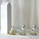 Miller et Bertauxmaison フランシス・ミラーと、パトリック・ベルトー。二人のクリエーターたちが創造する香りの世界、ミレー・エ・ベルトーはオリエンタルの文化と、パリのエッセンスを混ぜた世界を創造しています。1つ1つの香水の中には、快適でセクシー、自由でありオリジナリティを感じることのできる、まさに彼らの世界観そのものを表しています。アートコレクションにホームフレグランスとキャンドルを加えました。香りは彼らの時間旅行の産物であり、作品です。 フレグランスディフューザー ヨーロッパで幅広く愛用されている室内用芳香剤です。ガラスボトルの中には、それぞの香りをイメージしたカラーのガラス玉が入っていて、 角度によって拡大して見えます。家の形をイメージしたボックス入りです。スティック3本入り。 放散期間約3ケ月。本体φ80×高さ115ミリ。箱:幅100×奥行100×高さ400ミリin India:ヒマラヤスギ、ガラムマサラ、ヒヤシンス in the temple:神秘的なスモークウッドの香り in the 80's:チュベローズ、ホワイトアイリス、シャクヤク made in Franceパリで生まれ育ったパトリック・ベルトーと、アルザスの歴史ある都市ストラスブール近郊に育ったフランシス・ミラー。 そんな二人のクリエーターが営む小さなブティックが、マレ地区というパリでも最も古い歴史を持つ地域の一角にあります。 マレ地区は今、目新しいファッションの店やインテリア・ショップが数多く店を開き、カジュアルでファッショナブルな町として評判が高まり、パリの若い人や、情報通の観光客にあふれる界隈として知られています。 近年はオリジナルのオー・ド・パルファン(香水)にも力を注いで、これがまた人気を呼びます。 まさに彼らはパリの歴史の中心にアトリエを構え、その刻々と変化する気分、時代の空間の中で創作活動を続けてきたということなのです。 ミレー・エ・ベルトーがここに店を開いたのが1985年。 毎シーズン創作される、先端的なドレス、コート、ニットウェアはどれもこれもセンシティブで、パリの洒落っ気を好む女性たちの支持も高く、よく知られたブティックです。 さらに昔から旅行好きの彼らが、エジプトやインドへの旅で見つけてくる、小物やアクセサリーにも彼ら独特の工夫を加えて、エスプリのある品物に変えてしまいます。 刻々と変化する気分、時代の空間で創作活動を続けるミレー・エ・ベルトーの世界を香りでご堪能ください。 made in France