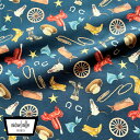 Michael Miller マイケルミラー 生地 ギター柄グリーン ブルー系 50's グレー ファブリック生地 ミッドセンチュリー コットン100% シーチング 北欧風 子供服 男の子 北欧柄 手芸 DIY 綿100%