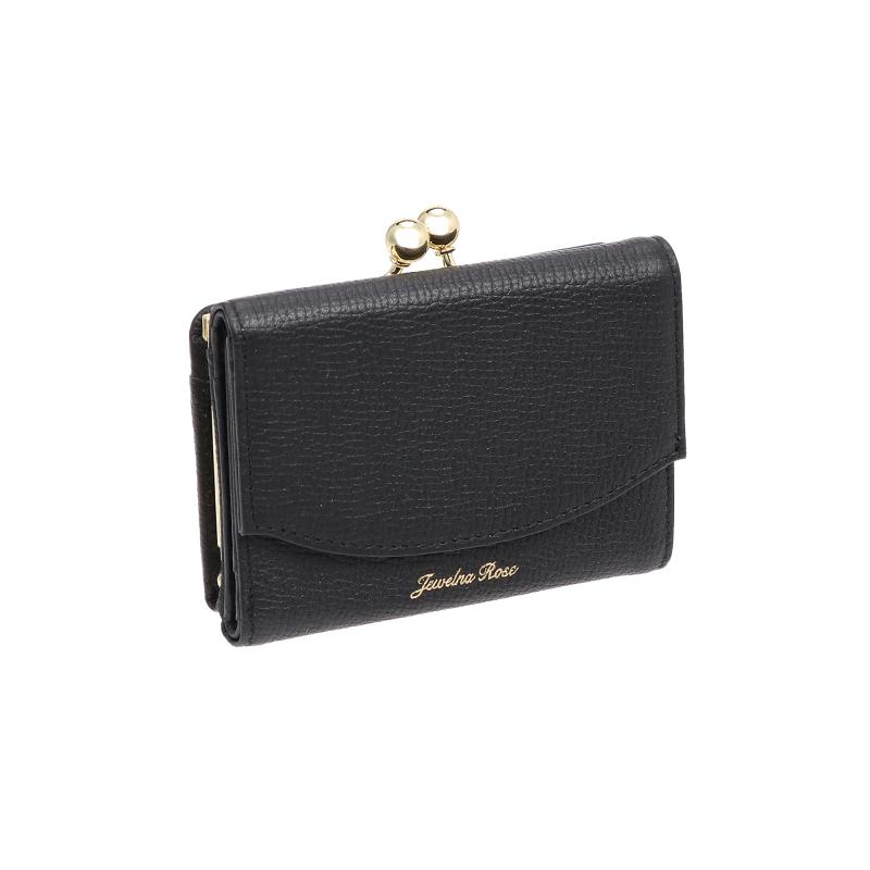 [ジュエルナローズ] 三つ折り財布 本革 [ミラージュ・ウォレット] ミニ財布 コンパクト がま口 No.15151 レディース ブラック