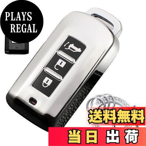 【送料無料】[LETINGFAR] キーケース 三菱用 スマートキーケース キーカバー 高級 TPU 柔らかい 3ボタン 三菱専用設計ekワゴン ekスペース ミラージュ アイ アウトランダー ランサーエボリューション デイズ 等に適用 キーホルダー (シルバー)