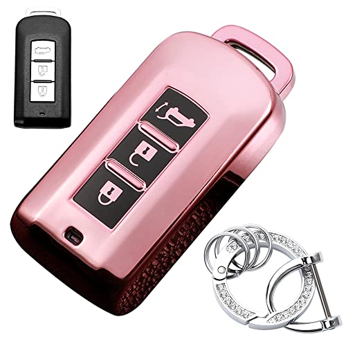 [OFFCURVE] 三菱用 スマート キーケース キーカバー 3ボタン 耐衝撃 スクラッチ防止 キーホルダー オシャレ 手触りいい 高級 電波障害なし アウトランダー RVR ekワゴン ekスペース ランサーエボリューション ミラージュ アイ デイズ リモコンキー ケース 車用 TPU素材