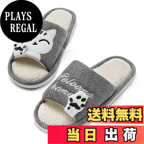 【送料無料】[Mishansha] スリッパ 前開き ルームシューズ 亜麻 メンズ レディース 室内履き 猫柄 来客用 部屋用 軽量 静音 オールシーズン対応