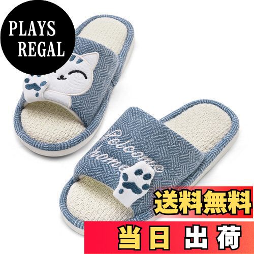 【送料無料】[Mishansha] スリッパ 前開き ルームシューズ 亜麻 メンズ レディース 室内履き 猫柄 来客用 部屋用 軽量 静音 オールシーズン対応