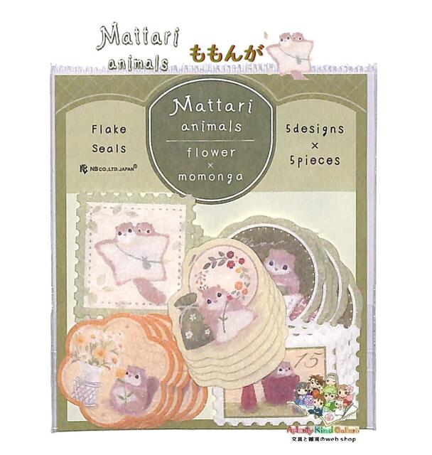 【 まったりシリーズ 】 フレークシール NO.2314103 デイ モモンガ cafe × Momonga DAY 5柄 全25枚入り シール 花 フラワー 切手風 スタンプ風 【3cmメール便OK】