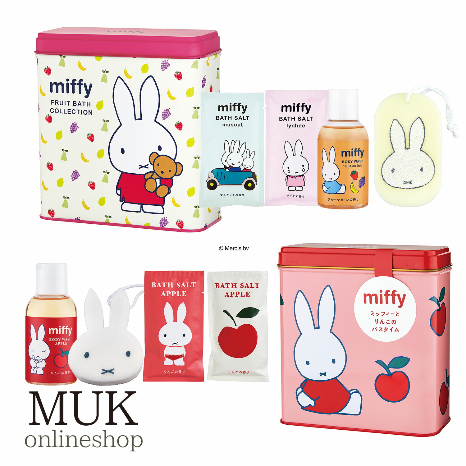 入浴剤 ミッフィー ミッフィー ボリス フルーツ フルーツオレ マスカット ライチ りんご ボディウォッシュ お風呂 風呂 バスソルト バスグッズ バス雑貨 スクエア 缶 うるおい 肌 バスアイテム GPP MUK miffy ミッフィー70周年 クリスマスプレゼント