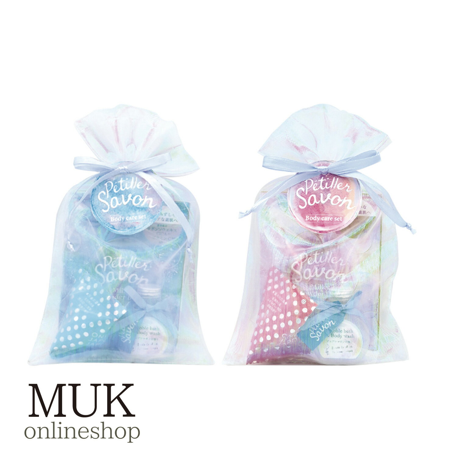 入浴剤 バスグッズ バスギフト 詰め合わせ セット お風呂 保湿成分 しっとり 潤い うるおい 温め スキンケア 香り いい香り ペティエサボン オーガンジーセット オーガンジー袋 入浴品 バブルバス ボディウォッシュ ギフト ブルー ピンク クリスマスプレゼント muk