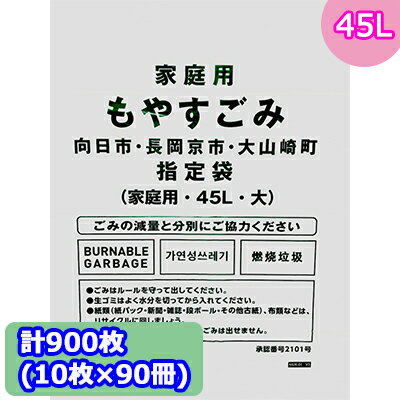 向日市・長岡京市・大山崎町指定 ゴミ袋 (45L) 計900枚 (10枚 × 90冊) MUK-01 送料無料 07297