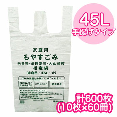 【法人・企業様限定販売】 向日市・長岡京市・大山崎町 指定 ゴミ袋 手提げタイプ (45L) 計600枚 ( 10枚×60冊 ) MUK-02 送料無料 07547