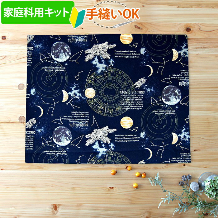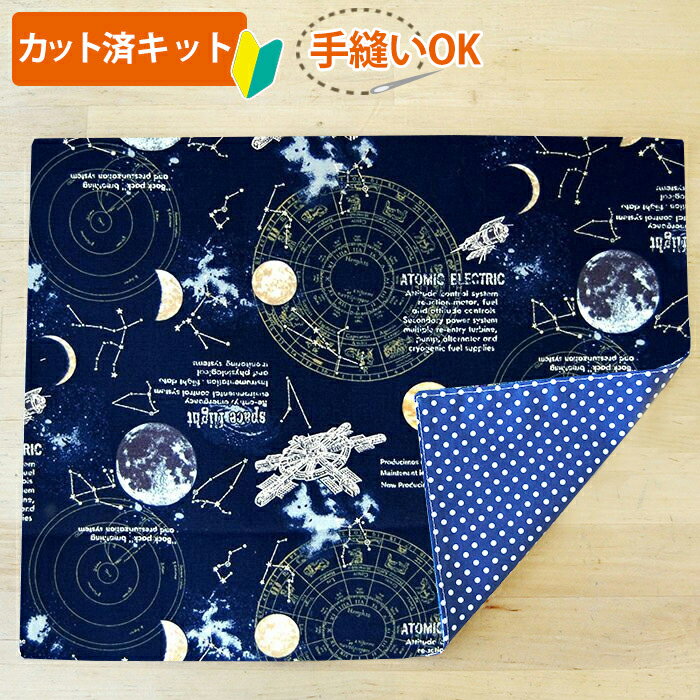 [カット済]宇宙ステーション ネイビー【ランチョンマット】手作りキット 中厚手生地 簡単 布 生地 ランチクロス ランチマット 小学生 高学年 中学年 作り方付き 初心者 手芸キット 手作り キット 入園 準備 保育園 テッテ