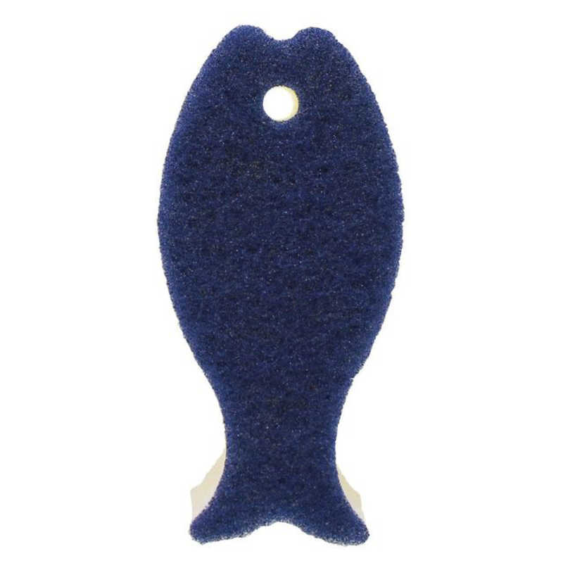 三層構造で泡立ちと泡持ちが良く、水切れも良いので衛生的です。手に馴染むおさかなの形は、コップの底や食器のフチも洗いやすく、使いやすさを追求した設計です。しっぽの部分はコップの底に届く長さで、さらに紐を通せる穴も付いています。落ち着いたカラーリングで、キッチンのインテリアにも馴染みます。