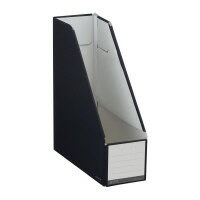●箱の形状/片面が大きくカットされていて中身を取り出しやすい。●表裏の見出し面/分類したタイトルを記入できる表面と、オフィス空間の美観から中身を見せなく隠せる裏面の3通りの活用が出来ます。●シックなカラー/最新のオフィスに溶け込むシックなカラーをラインアップしました。●ワンタッチ組み立て/ワンタッチでボックス形状に組み立てることが出来ます。●フィンガーホール付き/棚からスムーズに取り出すことができます。サイズ:A4-タテ収容寸法:94外寸法(高さ・幅・背幅)(mm):312・264・102●再生材配合率/段ボール(古紙パルプ配合率86%)●材質/段ボール(古紙パルプ配合)