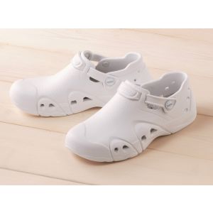 ※送料無料対象商品のみのご注文で送料無料になります。(沖縄・一部離島等は対象外となります)送料有料の商品と同時にご注文の場合は送料が発生いたします。ご了承ください。▼こちらの商品に関するご注意事項━━━━━━━━━━━━━北海道・沖縄・離島への配送は行っておりません。こちらの商品は代引きでの発送が出来ないため、お支払い方法の変更をお願いする場合がございます。完全な一体成型で丸洗いOK!破れ・剥がれ・ほつれが一切なし!中敷・靴底の間に空気の通り道があり抜群の通気性!落下物や薬品・血液がかかっても直接足に届かない!こぼれた液体は通気孔を避けて床に落ちますストレッチャー等のストッパーを外す際にも靴の先端(特に親指側)を厚めにガードしているので足先が痛くありませんカラー/ホワイトサイズ/S(22.0〜22.5cm)、M(23.0〜23.5cm)、L(24.0〜24.5cm)、LL(25.0〜25.5)、3L(26.0〜26.5cm)、4L(27.0〜27.5cm)、5L(28.0〜28.5cm)アッパー:E.V.A中敷:E.V.A(表面布はポリエステル※抗菌・防臭加工)ソール:E.V.Aヒール高:30mmウイズ:3E片足重量:約135g(Mサイズの場合)