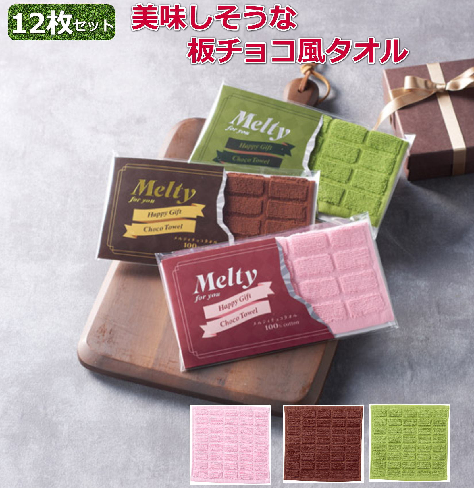 【12枚セット】板チョコ風タオル とってもかわいい板チョコ風なパッケージ ハンドタオル12枚セット まとめ買い セット販売 大勢に配る際におすすめ プチギフト ビンゴ大会 景品 子供会 記念品 粗品 ノベルティー 綿100% 送料無料