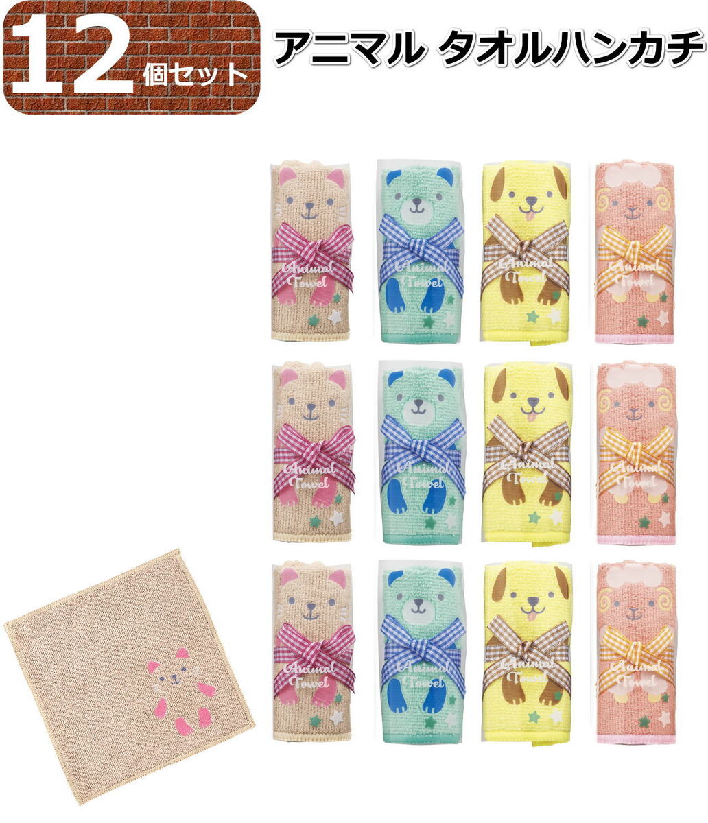 【12個セット】アニマルハンカチタオル 個包装 ラッピングがかわいい イヌ ヒツジ クマ ネコ ふわっとアニマルハンカチタオル 4色 景品 記念品 プチギフト ご挨拶品 ノベルティー ばらまき 子供 かわいい キッズ クリスマス ビンゴ 引越し セット 送料無料