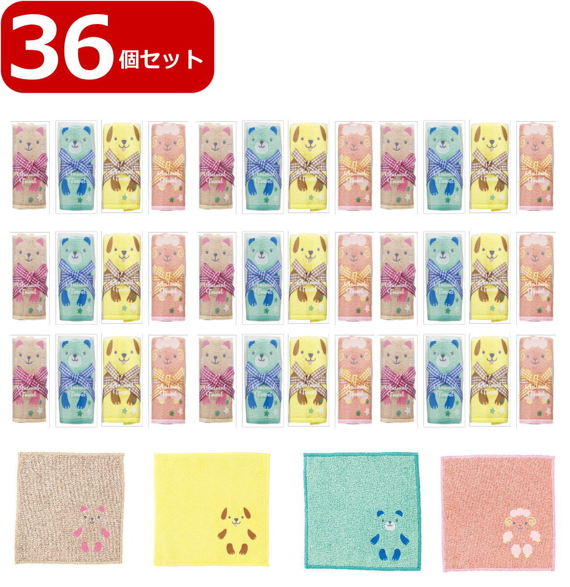 【36個セット】アニマルハンカチタオル 個包装 ラッピングがかわいい イヌ ヒツジ クマ ネコ ふわっとアニマルハンカチタオル 4色 景品 記念品 プチギフト ご挨拶品 ノベルティー ばらまき 子供 かわいい キッズ クリスマス ビンゴ 引越し セット 送料無料