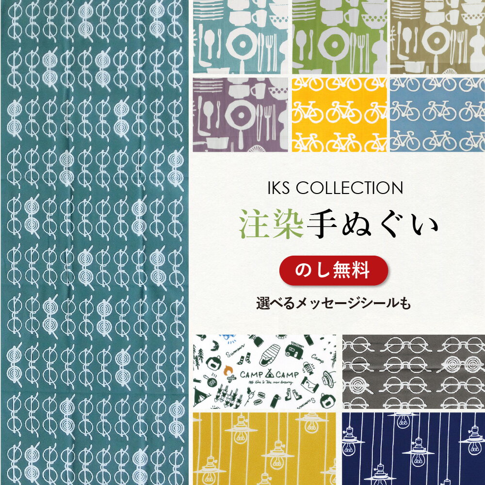 手ぬぐい 注染 日本製 雑貨柄 ( キッチン / 自転車 / 丸めがね / ランプ / キャンプ ) てぬぐい おしゃれ 北欧 モダン 綿100% のし メッセージシール 手拭い お年賀 お歳暮 ギフト プレゼント ノベルティ IKS COLLECTION