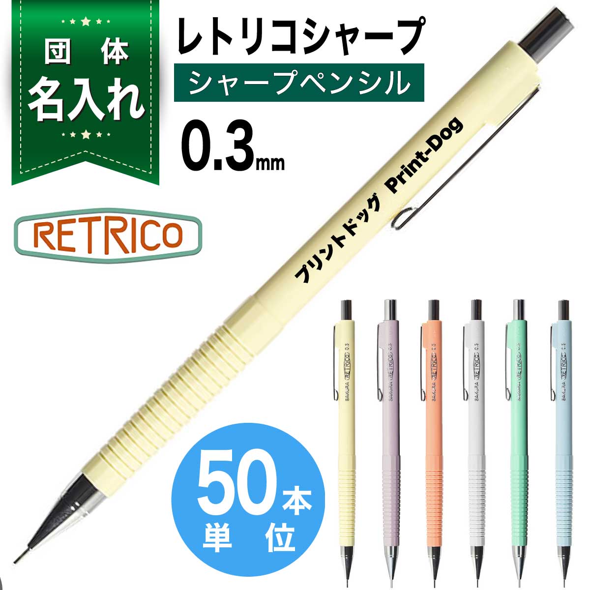 50本単位 団体 名入れ シャープペン レトリコ 0.3mm NS203R シャープ 名入れ レトロ おしゃれ シャーペンSAKURA RETRICO 創業記念 創立記念 記念品 贈答 ノベルティ 団体