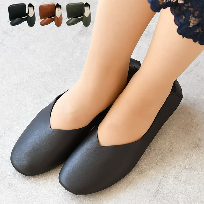 【10%OFFクーポン配布中】 スリッパ 入学式 卒業式 携帯 靴袋付 ポーチ付き おしゃれ コンパクト スリッポン レザー調 レディース 柔らかい 23cm 24cm S M L ルームシューズ バブーシュ 保護者 女性 黒 ブラック レ プリエ ノイエ オケージョン