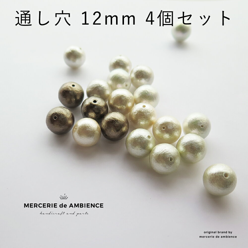 【10%OFFクーポン配付中】コットンパール通し穴 12mm 4個セットメール便対応 アクセサリーパーツ 手芸 材料 素材 穴あき ハンドメイド 手芸 おしゃれ オケージョン パール 両穴 ハンドメイドピアス