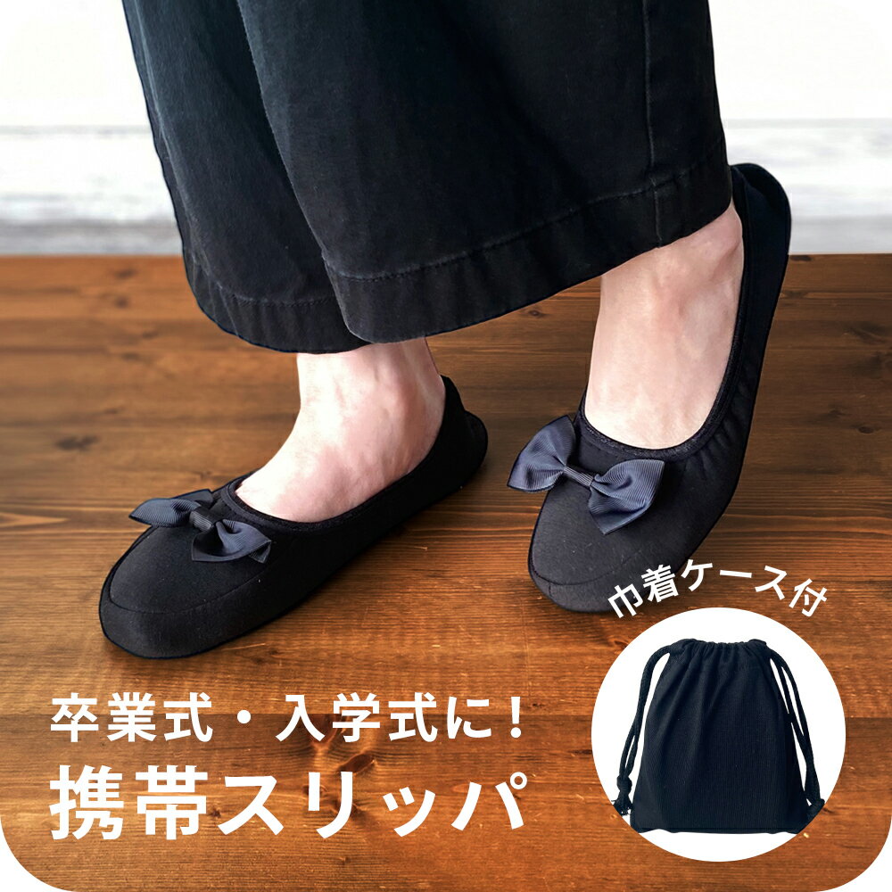 携帯スリッパ 折りたたみ スリッパ 黒 オケージョン 持ち運び便利 バッグ付き レディース おしゃれ かわいい フォーマル リボン 幼稚園 学校 行事 授業参観 上履き 入園式 入学式 卒業式 卒園式 受験 誕生日プレゼント 女友達 女性