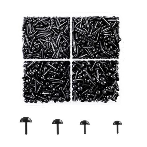 YFFSFDCさし目ぬいぐるみ目差し目動物手芸め約800個入り(3mm/4mm/5mm/6mm)ドールメイキングDIY縫製手作りパーツ(黒、収納ケース付き)