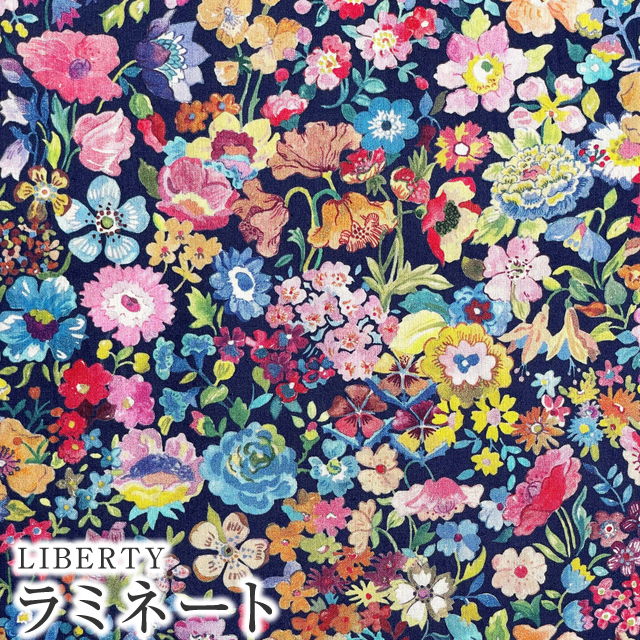 LIBERTYリバティプリント 国産つや消しラミネート(ビニールコーティング生地)<Classic Meadow>(クラシックメドウ)【ネイビー地/マルチカラー】MATLAMI3632219-J22D《2022AW THE HOUSE OF LIBERTY》