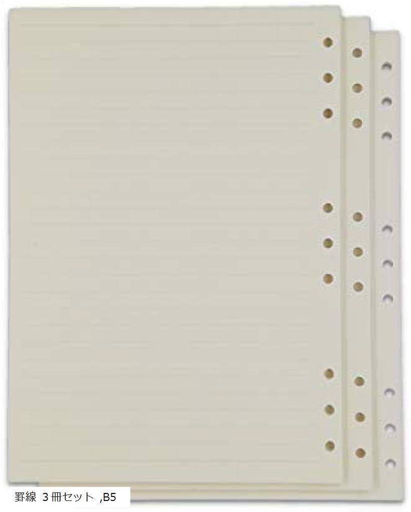 【楽天ランキング1位入賞】ルーズリーフ B5 9穴 リフィル システム手帳 交換用 90頁 3冊 セット アイボリー OF290 罫線 (罫線 3冊 (B5), B5)
