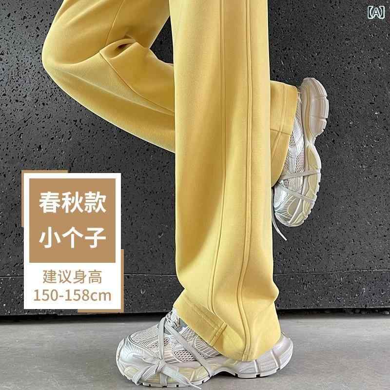 パンツ レディース 春秋 ワイドレッグパンツ 小柄 高身長 ストレートパンツ スポーツパンツ スウェットパンツ 綿混 厚手 無地 黄色 ブラウン グレー ブラック ホワイト カジュアル 通勤